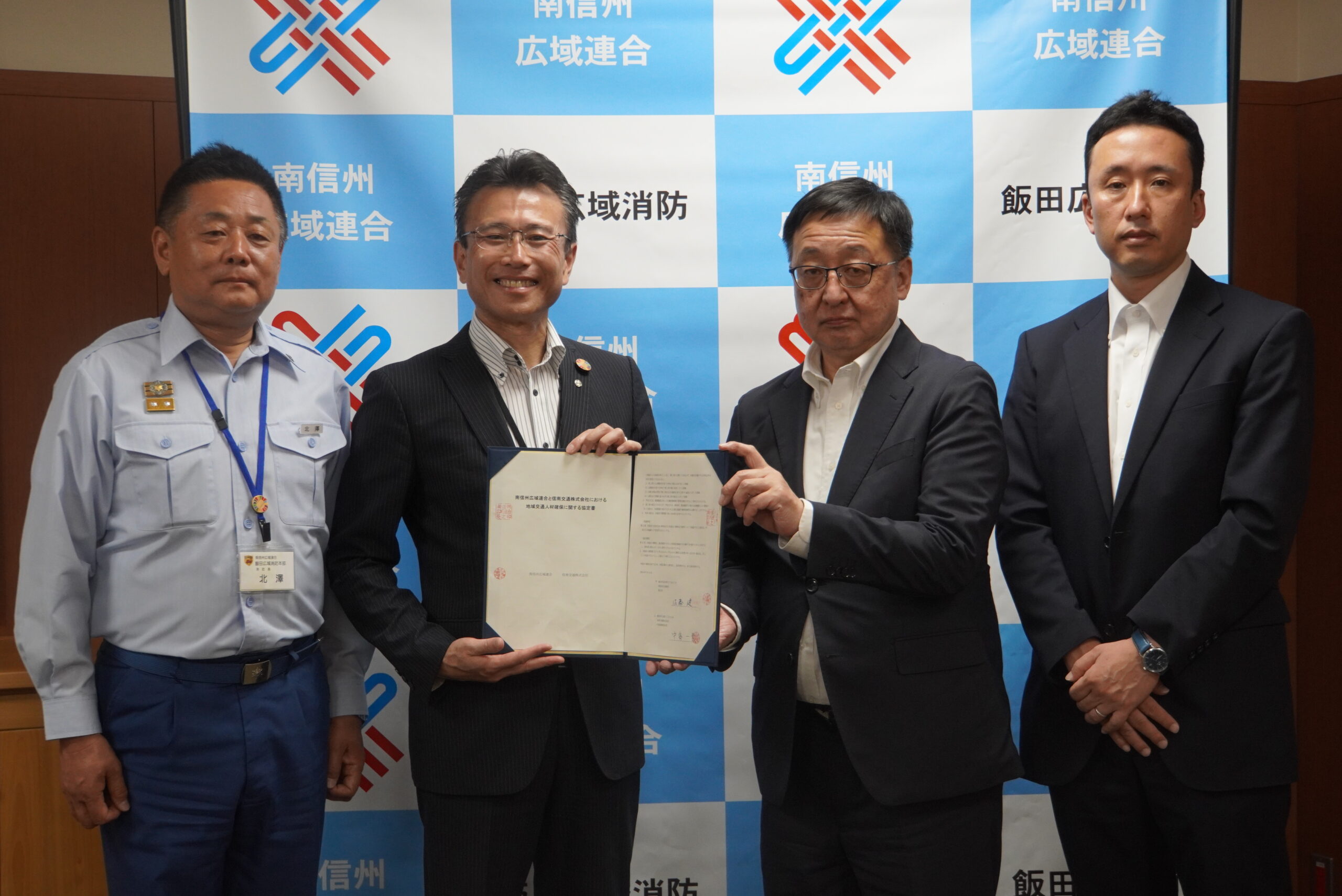 この度、南信州広域連合と信南交通株式会社との間で、退職予定の飯田広域消防に所属する消防職員のうちバス運転士として働くことを希望する者を対象とし、退職後に円滑にバス運転士として働ける環境づくりや支援等について、協定書を交わし、取組を進めることとしました。 今後とも、地域交通の維持に双方協力して努めてまいります。 Categories: お知らせ, 南信州広域連合2024年7月22日Post navigationPreviousPrevious post:第3回南信州広域連合会議の結果報告を掲載しましたNextNext post:【終了しました】南信州キャンペーンin中日ビルを開催します!(お知らせ)