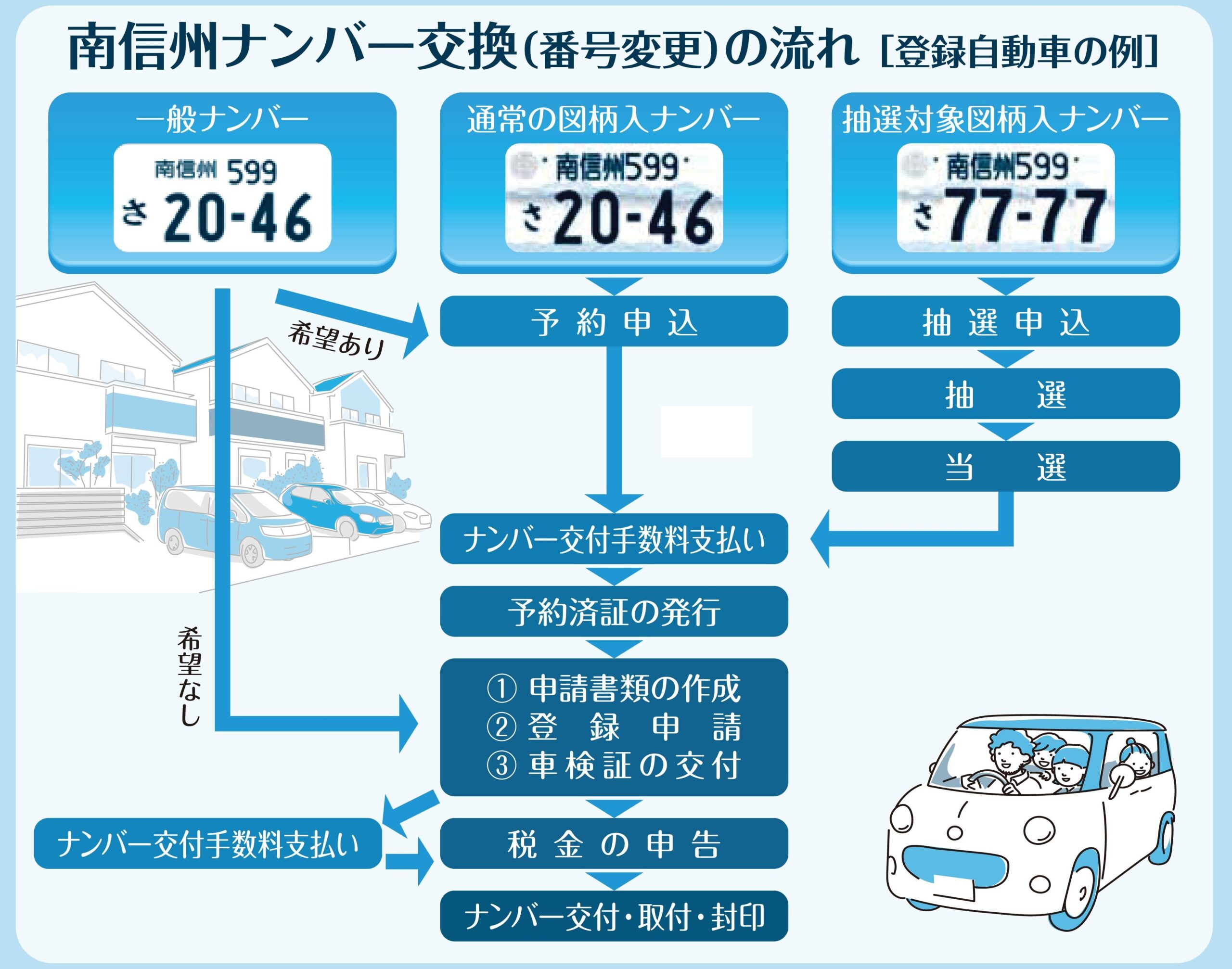 ※上記以外で、使用の本拠地が飯田下伊那の場合は、希望により「南信州ナンバー」の変更も可能です。
