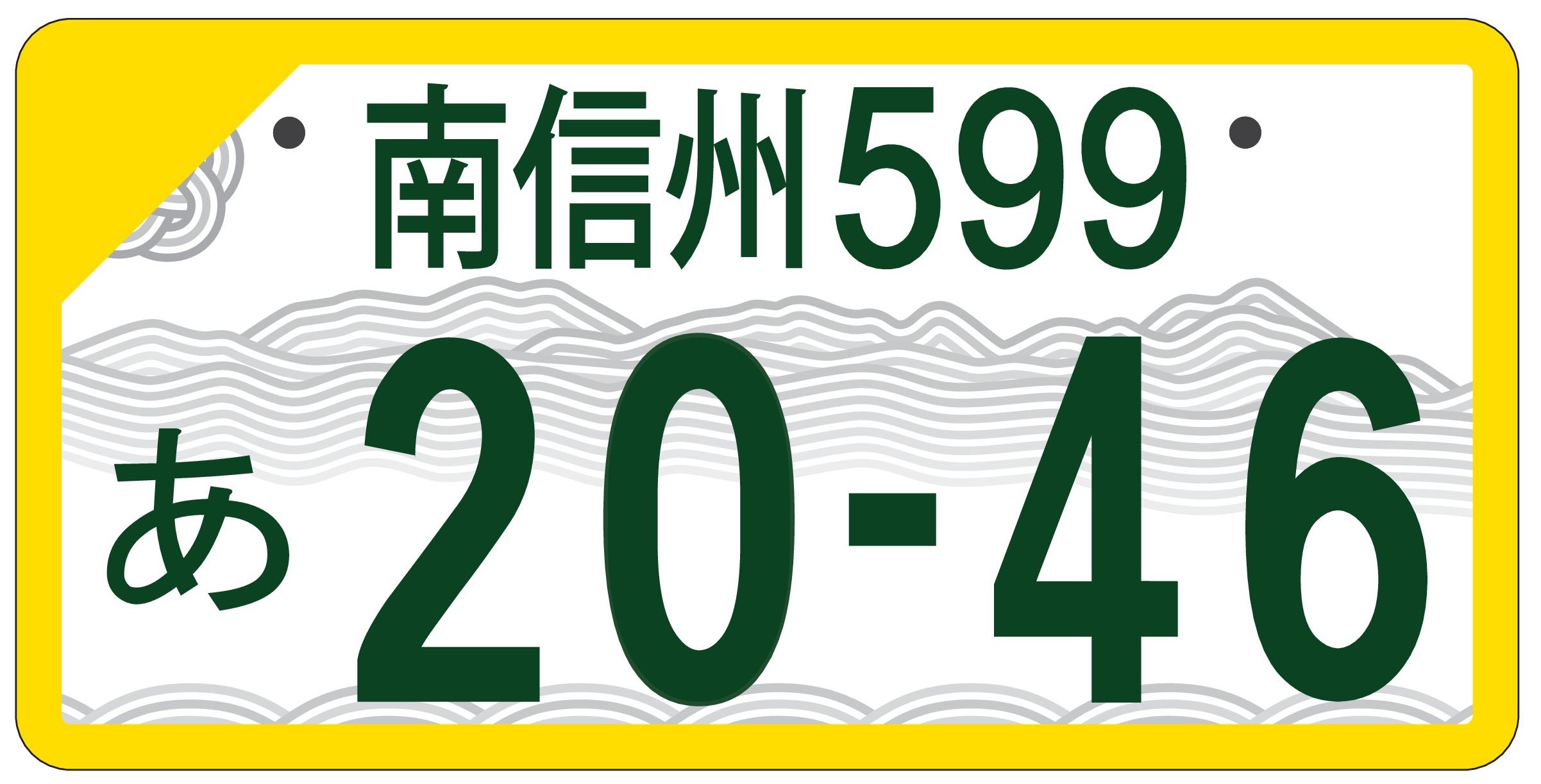 図柄入り「南信州」ナンバーのデザインは各種印刷物等にご使用いただけます。